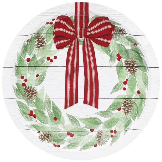 Bandeja Redonda de Metal com o desenho de Guirlanda.