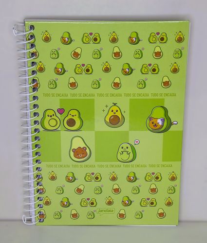 Caderno espiral 1/4, capa dura, com 80 folhas, tamanho 14cm x 20cm, estampas divertidas.