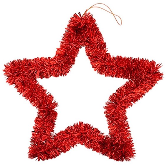 Enfeite de pendurar em formato de estrela natalina com festão.