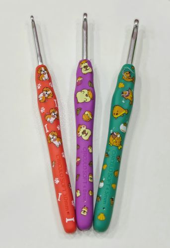 Kit com 3 Agulhas de crochê soft com cabo emborrachado da Círculo, Estampada - Coleção Bichos.