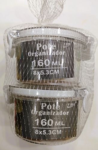 Kit de 2 potes de plástico redondos com fechamento hermético.