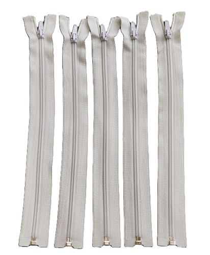 Kit com 5 unidades de zíper de nylon destacável nº 05 - tamanho: 30cm
