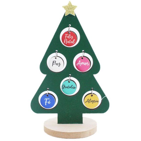 Árvore Natalina de Mesa, de MDF, tamanho: 16cm de altura x 10cm de largura.