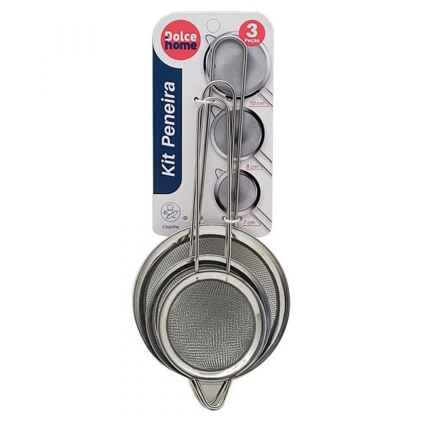 Kit com 3 Peneiras de aço inox de tamanhos diferentes.
